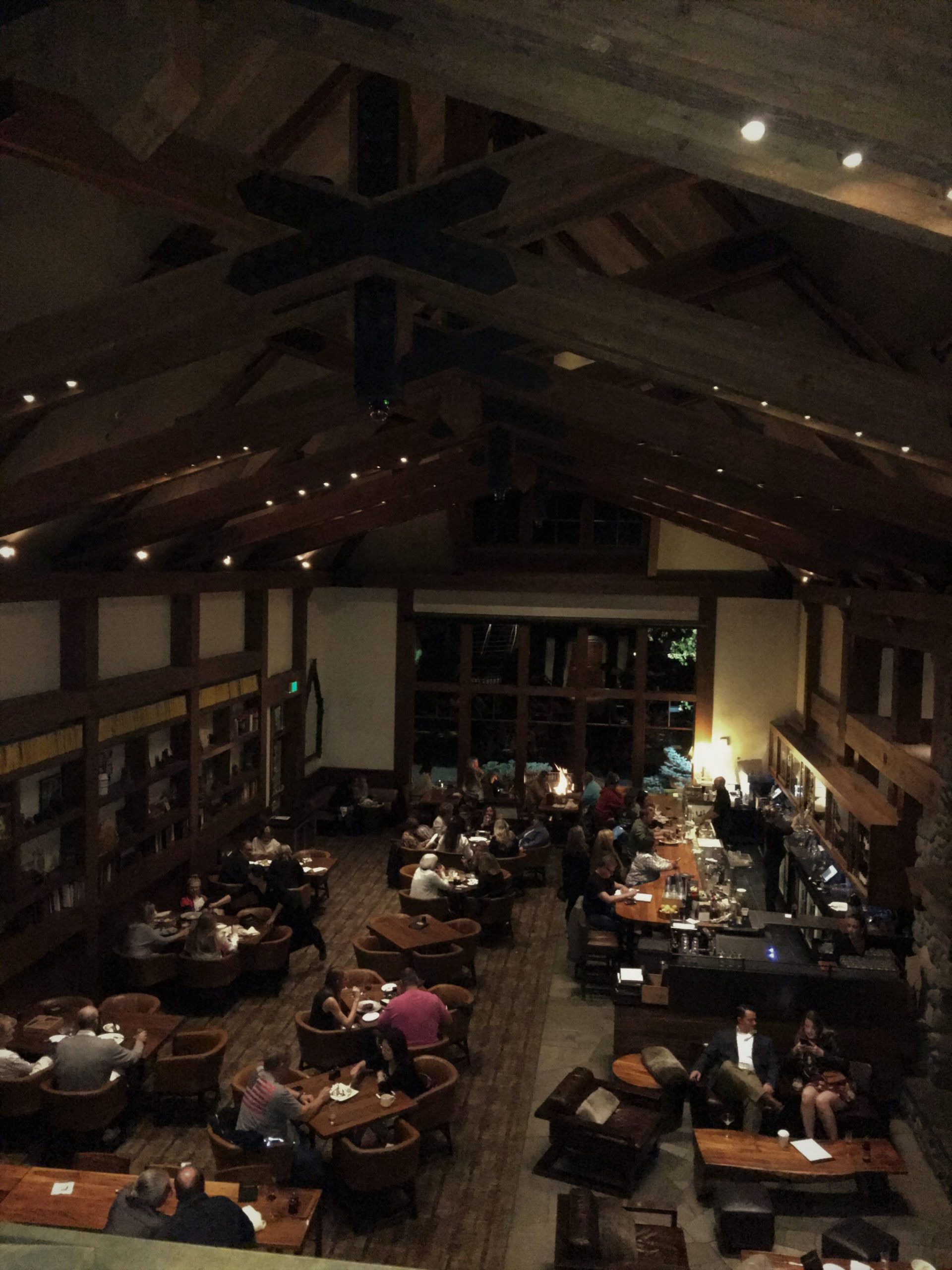 アペタイザ―はトマトスープとムール貝。トマトスープはひとつだけ注文しましたが、2人でシェアするの?とウエイトレスに聞かれたので、YESと答えたら2カップにちゃんと分けて持って来てくれ、なかなか気が利くなと感心。メインはサーモンの上に蟹サラダがのっかったものとバイソンのステーキ、サイドにポテト・グラタン。前半にパンを食べ過ぎたのでメインはすこぶる美味しかったけど完食出来ず半分お持ち帰り。お部屋に冷蔵庫があって助かりました。このレストランの名物デザート、ベイクド・タホ―(過去記事参照下さい)は残念ながらお腹いっぱいで頂けませんでしたのでまた次回のお楽しみに。