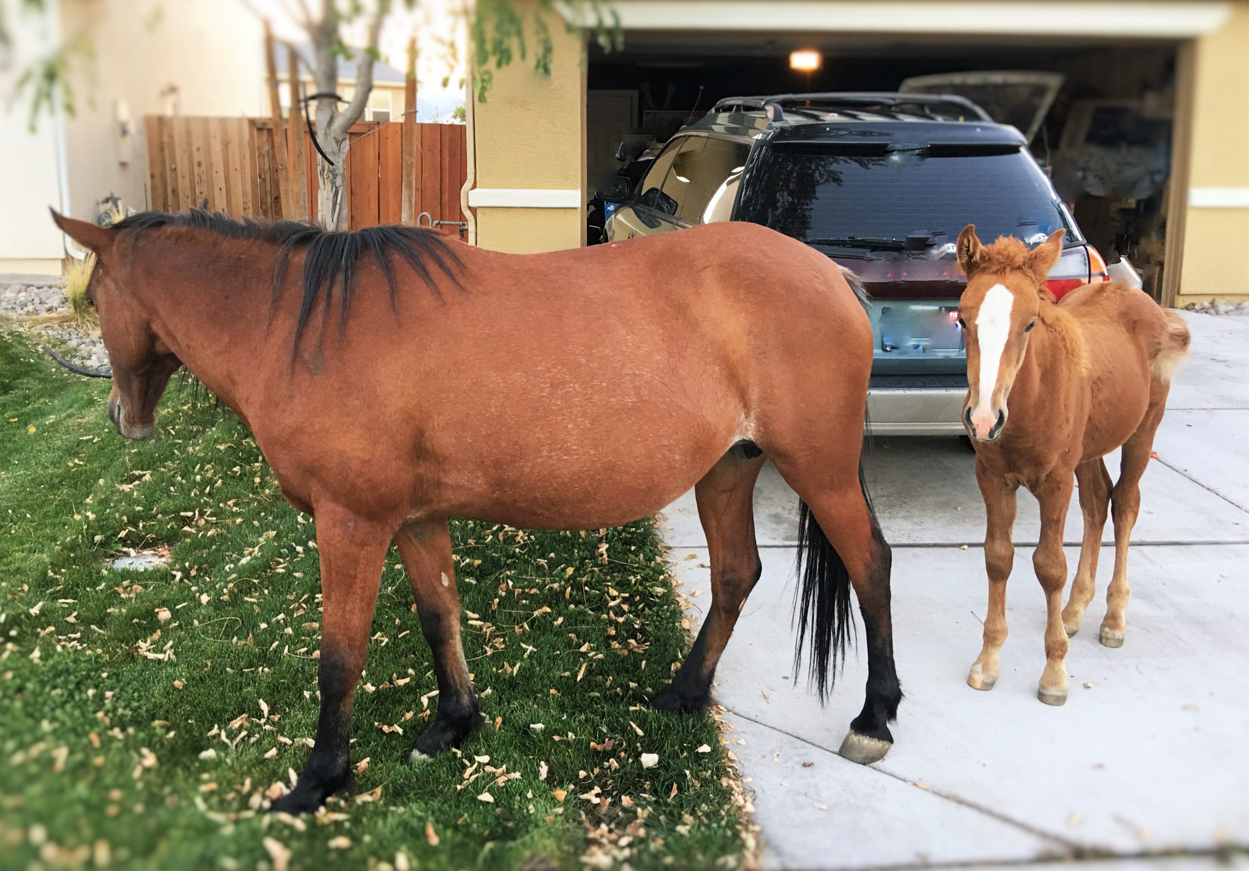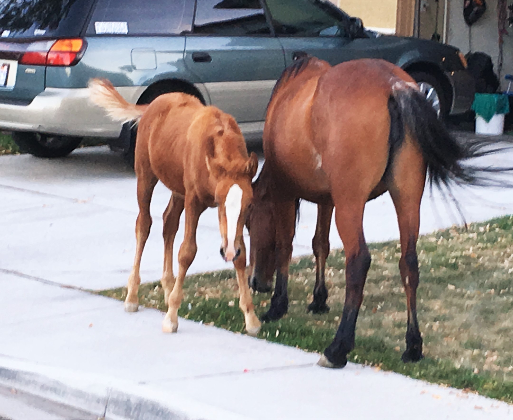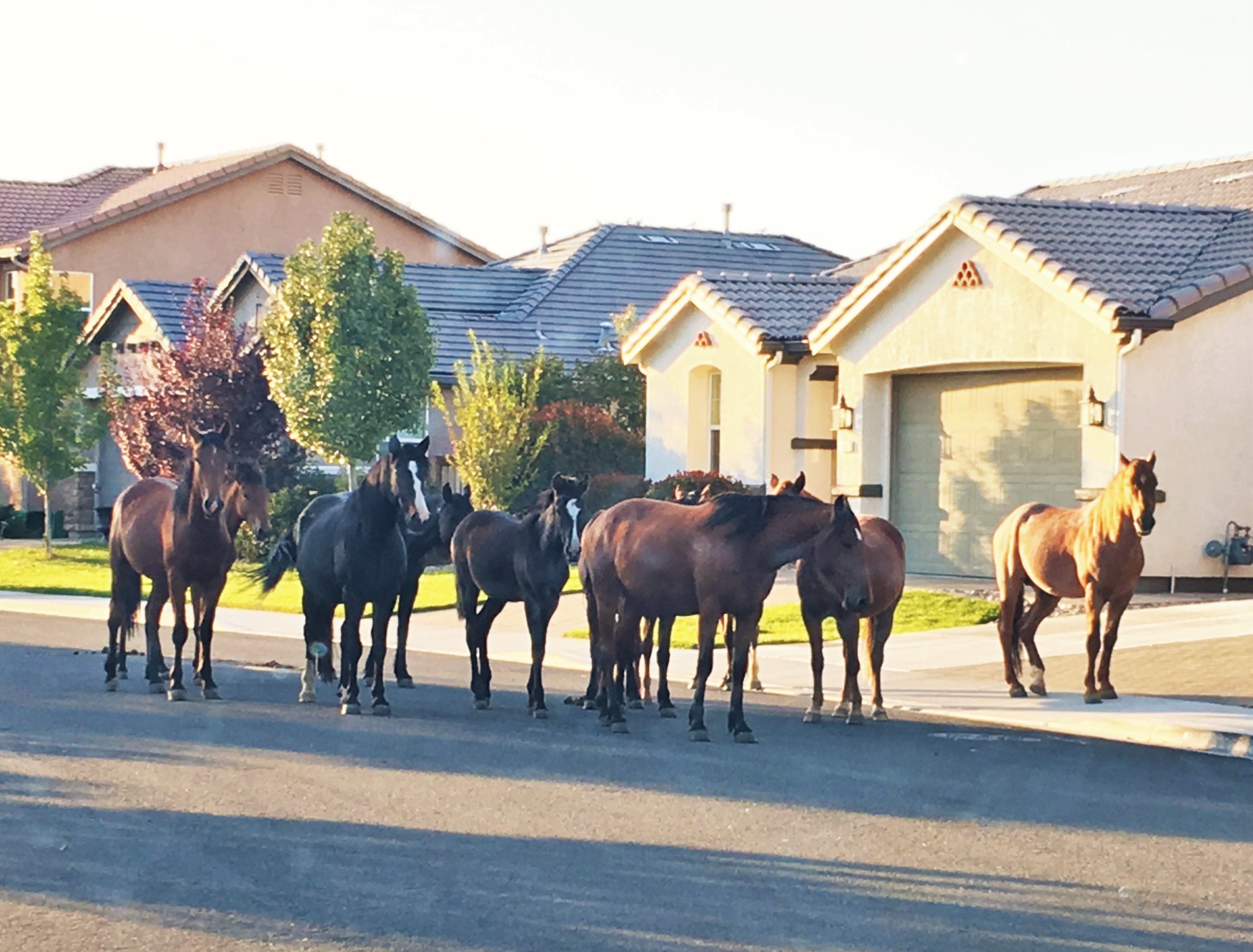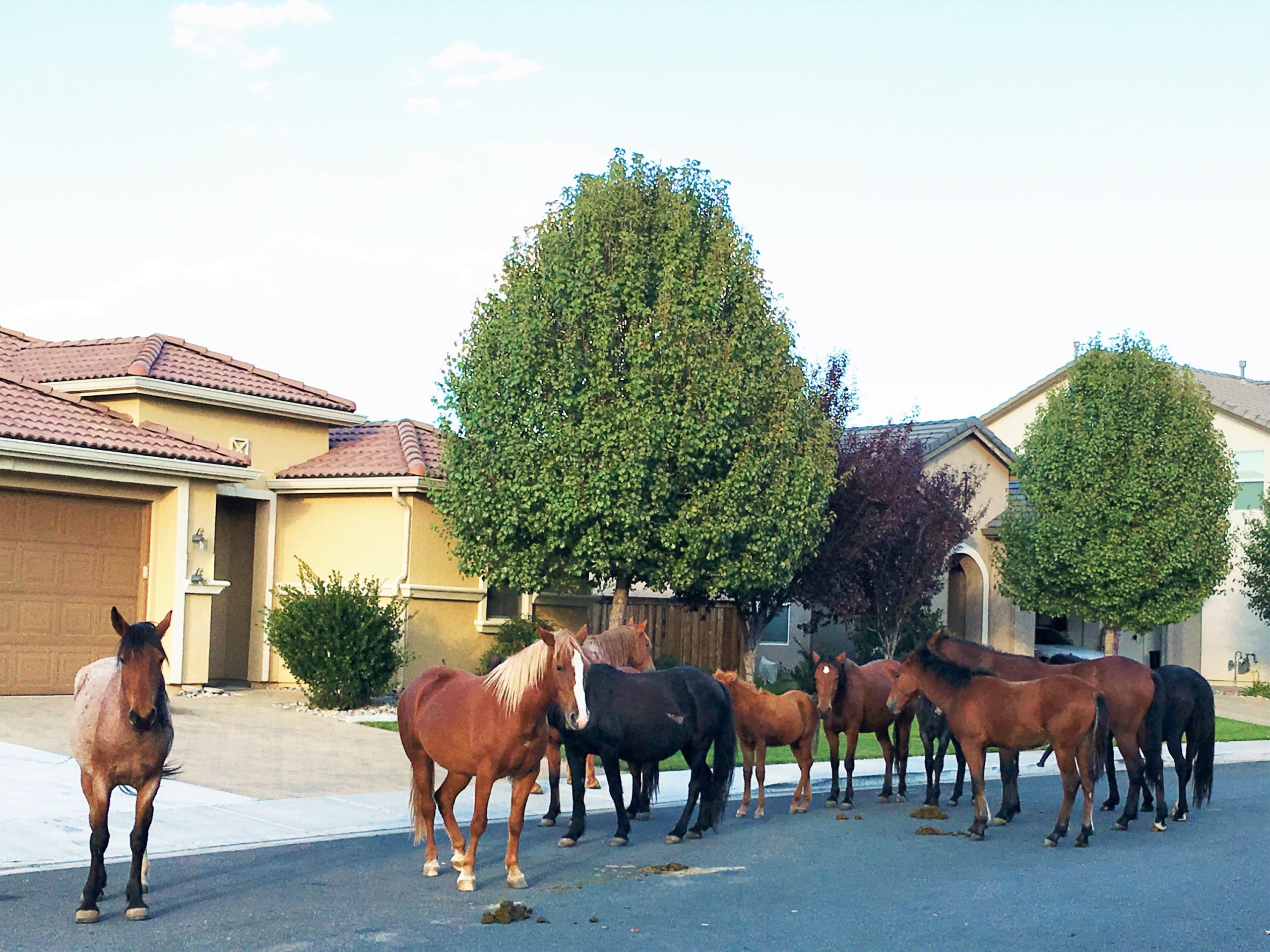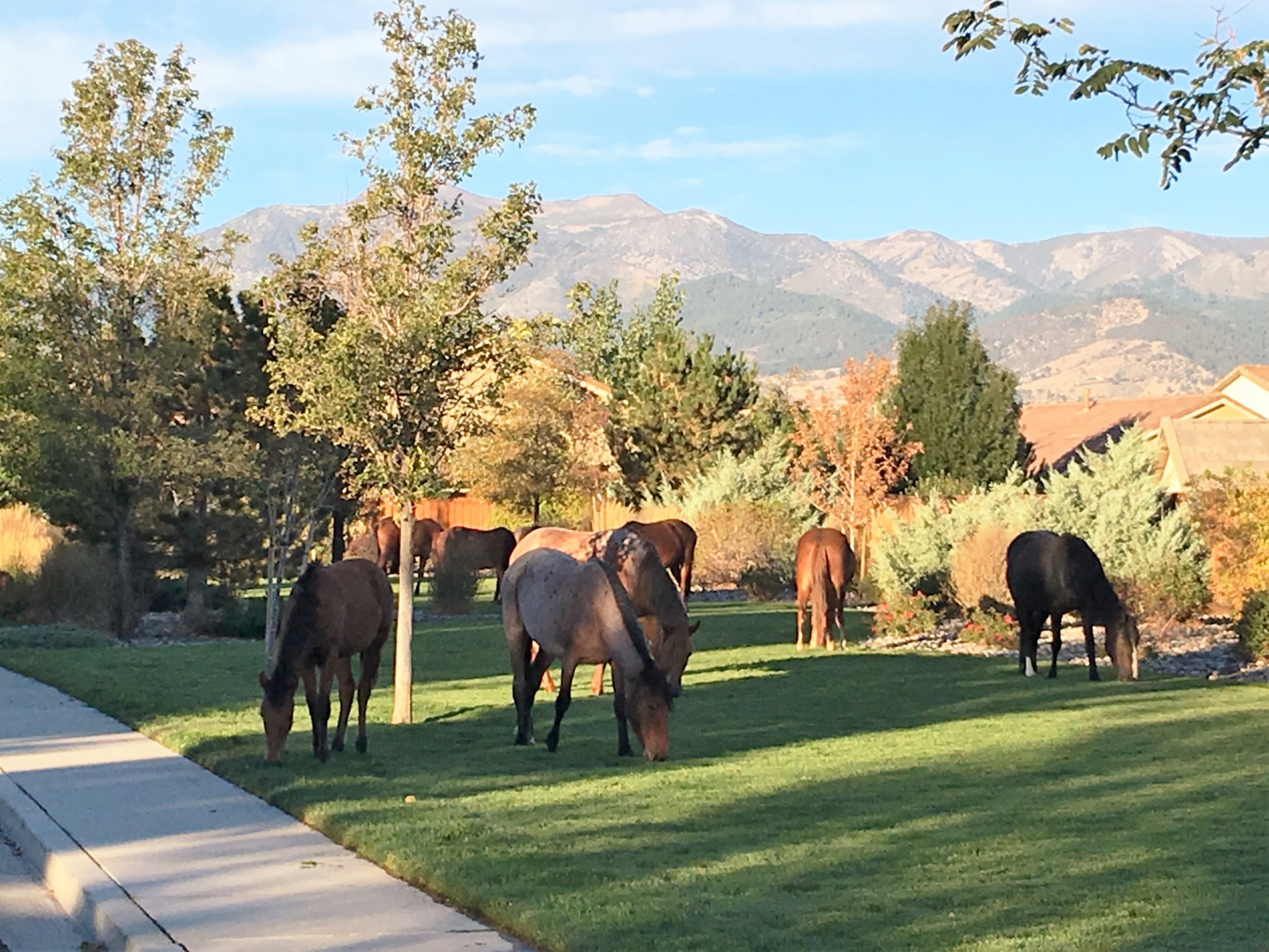 夏から秋にかけて住宅街に群れで出没し勝手に人様の家の前庭の芝生を食べに来ることも多く、初めて目撃するとかなりの衝撃を受けると同時に尋常じゃなく得した気分になりめちゃくちゃ興奮します。が、近寄るのは当然厳禁なのでお馬さん達の神経に触らないよう、気分を損ねないよう、そして怖がらせないように興奮を抑えて静か~に遠くからニヤニヤ眺めます。